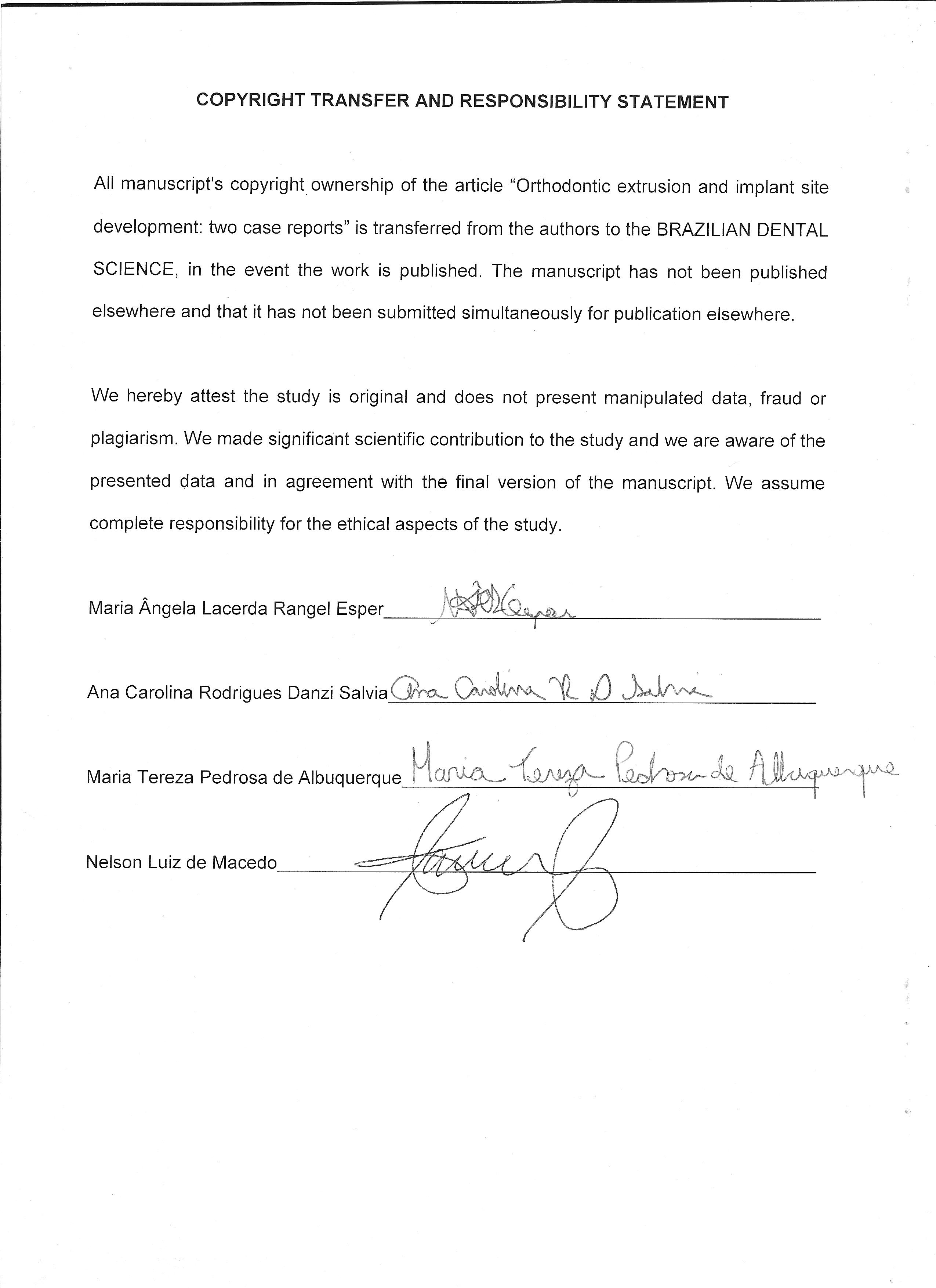 Brazilian Dental Science uses the Creative Commons (CC-BY 4.0) license, thus preserving the integrity of articles in an open access environment. The journal allows the author to retain publishing rights without restrictions.