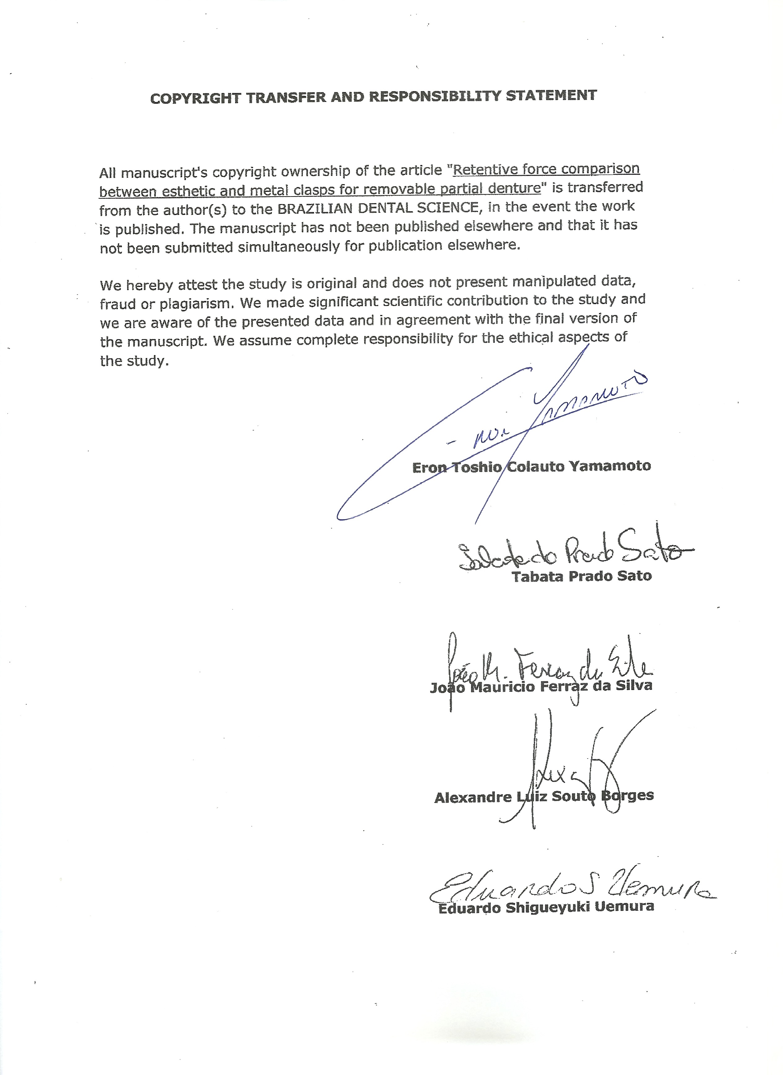Brazilian Dental Science uses the Creative Commons (CC-BY 4.0) license, thus preserving the integrity of articles in an open access environment. The journal allows the author to retain publishing rights without restrictions.