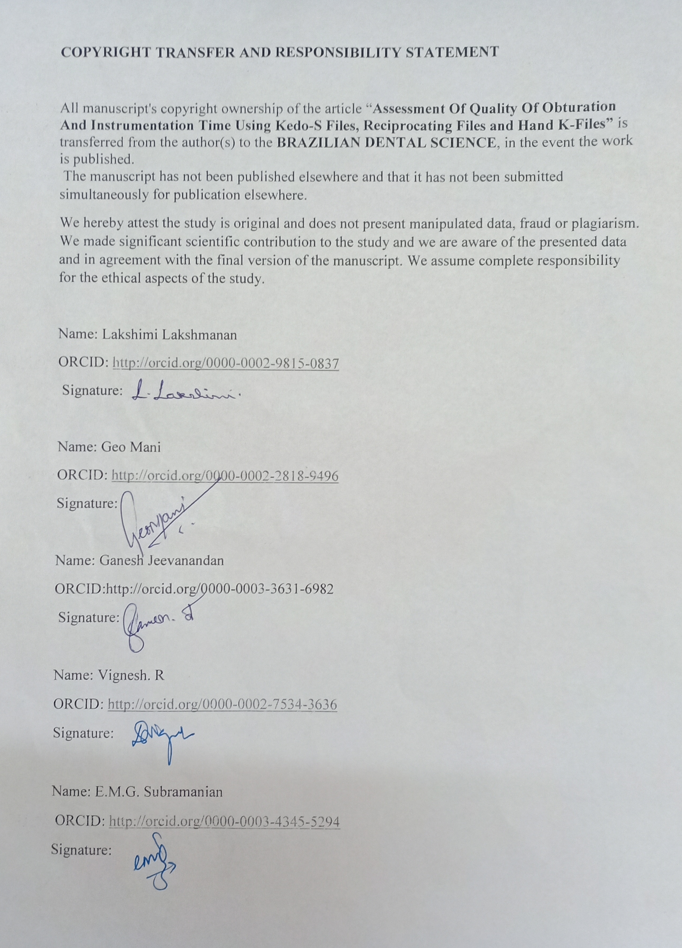 Assessing the quality of root canal filling and instrumentation time using kedo-s files, reciprocating files and k-files