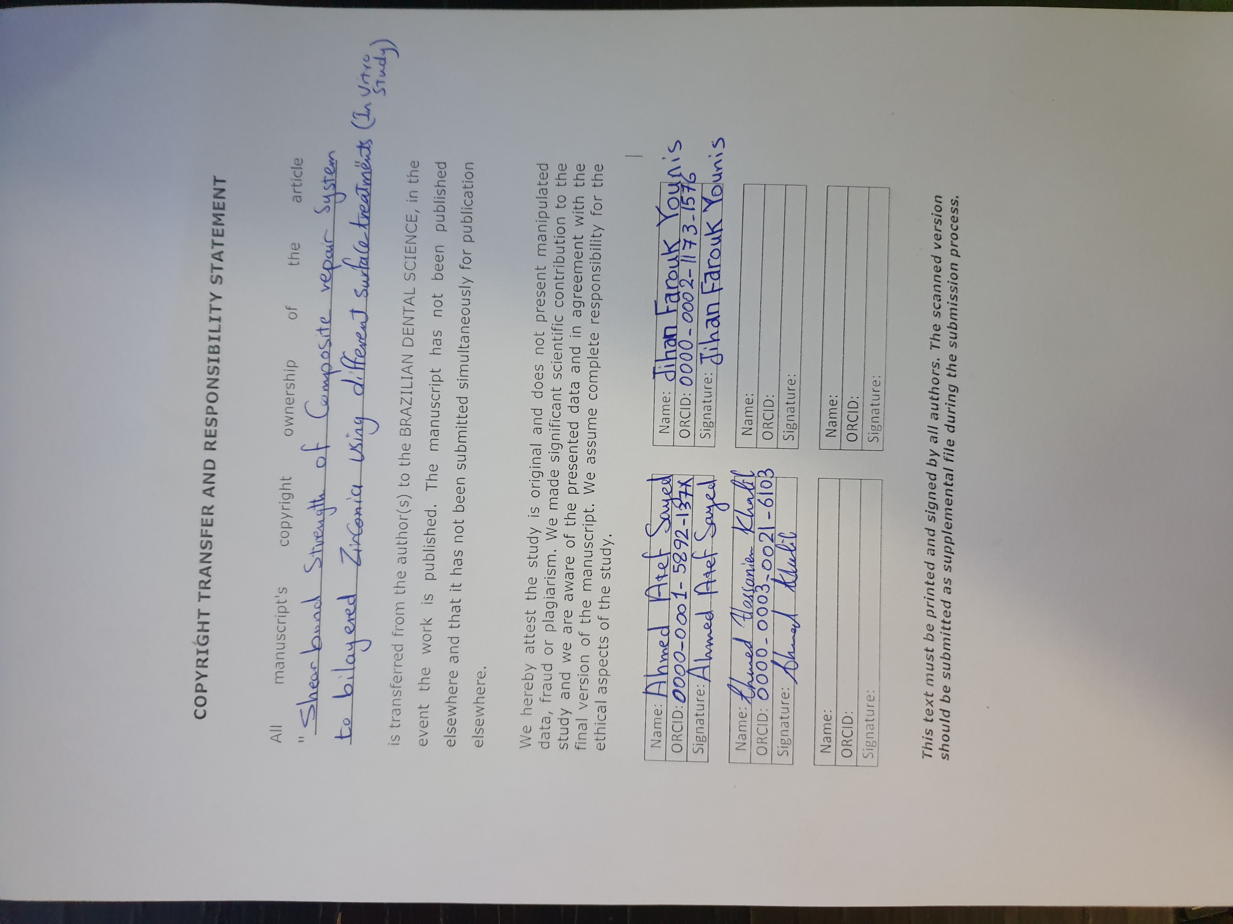 Brazilian Dental Science uses the Creative Commons (CC-BY 4.0) license, thus preserving the integrity of articles in an open access environment. The journal allows the author to retain publishing rights without restrictions.