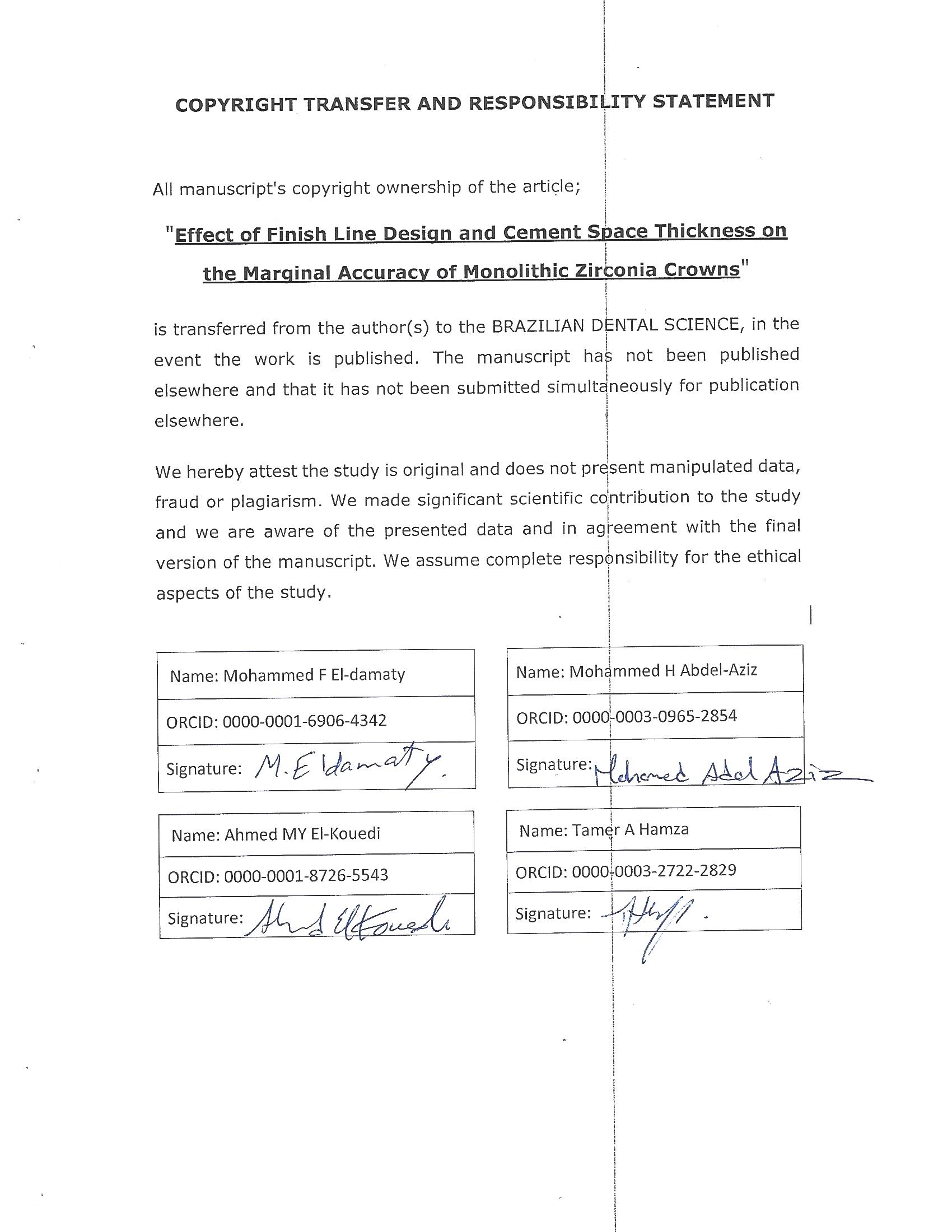 Ahmed WM, Abdallah MN, McCullagh AP, Wyatt CCL, Troczynski T, Carvalho RM. Marginal discrepancies of monolithic zirconia crowns: the influence of preparation designs and sintering techniques. J Prosthodont. 2019 Mar; 28(3):288-98. doi: 10.1111/jopr.13021
