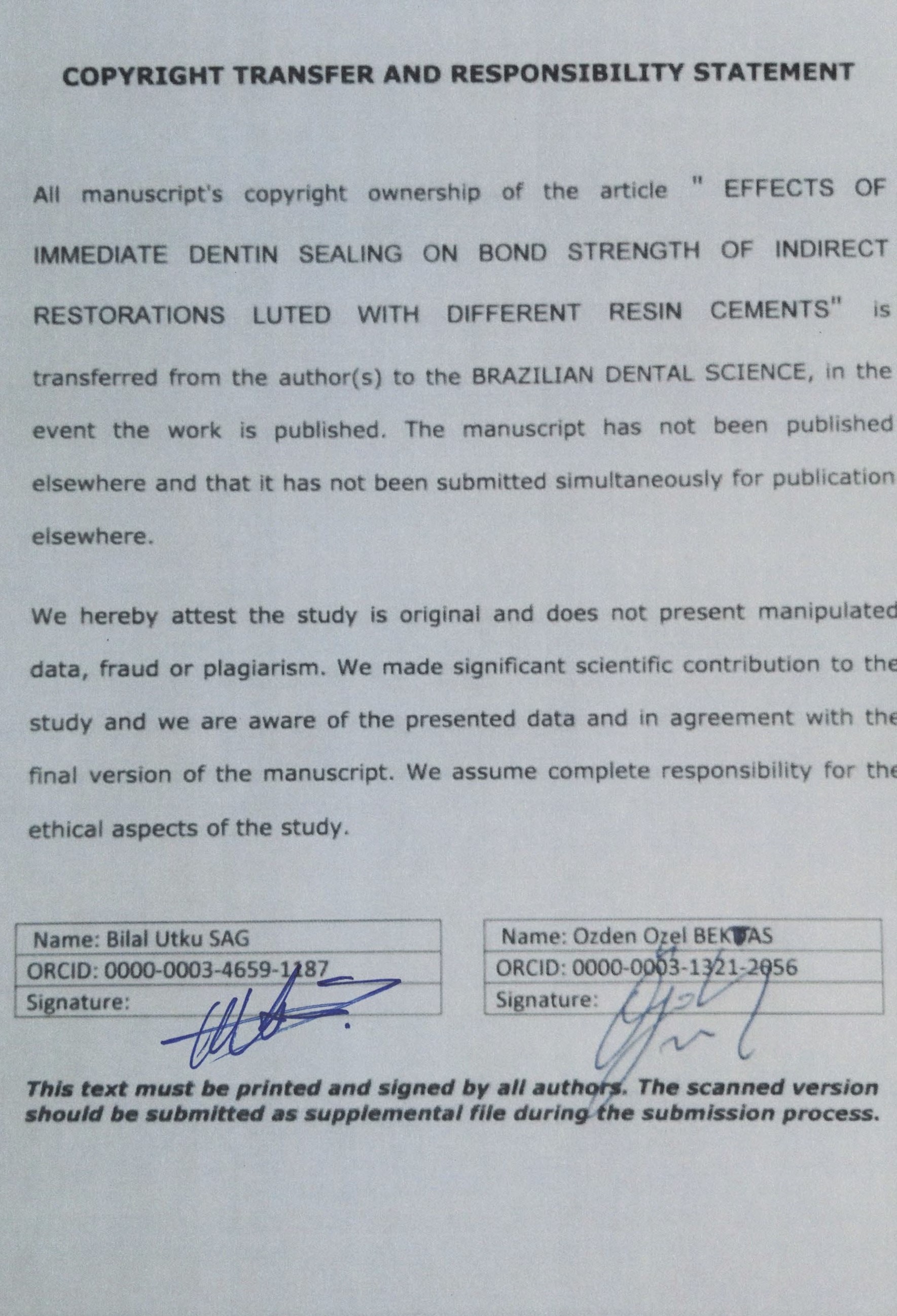 Brazilian Dental Science uses the Creative Commons (CC-BY 4.0) license, thus preserving the integrity of articles in an open access environment. The journal allows the author to retain publishing rights without restrictions.