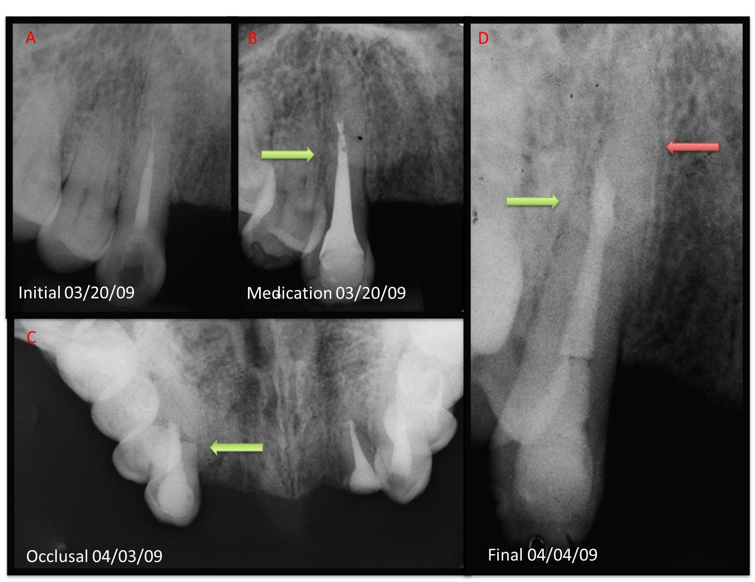 Introduction: The aim of this case report is todemonstrate the retreatment of a maxillary caninediagnosed with a horizontal root fracture utilizingan electronic apex locator and monitored with conebeam computed tomography. Case Report: A 35year old African American male was referred for rootcanal retreatment of a maxillary right canine prior toprosthetic rehabilitation. Following removal of guttapercha, an apex locator was utilized to determine thelength of the root canal. After a more comprehensivedental history, the patient confirmed a previouslyunreported history of dental trauma at this time,leading to the suspicion of a horizontal root fracture.Clinical microscopy detected a connective tissue in theapical third of the root canal and multiple periapicaland occlusal radiographs enhanced visualizationof a horizontal root fracture. The coronal segmentwas filled with an MTA apical plug and the apicalsegment remained stable. A recall after 1.5 yearswas performed with CBCT, which showed no apicalradiolucency. Discussion: The present case reportreinforces the precept that detailed dental history andcareful observation of radiographs are critical factorsfor obtaining an accurate diagnosis. Fundamentaladjuncts, such as microscopy, apex locators andCBCT imaging, can potentially aid in the diagnosisand the subsequent treatment plan of horizontal rootfracture.