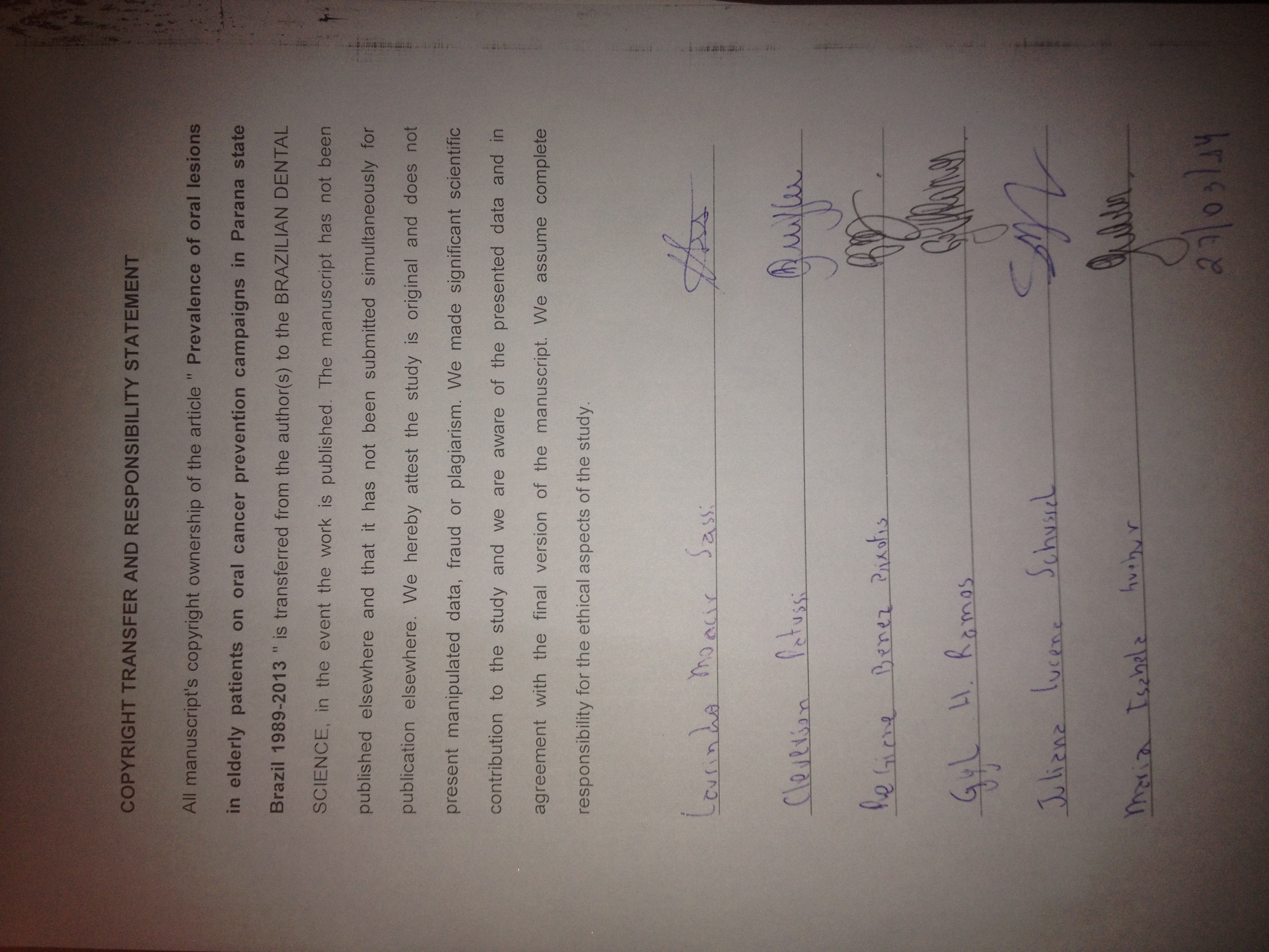Prevalence of oral lesions in elderly patients on oral cancer prevention campaigns in Parana state Brazil 1989-2013.