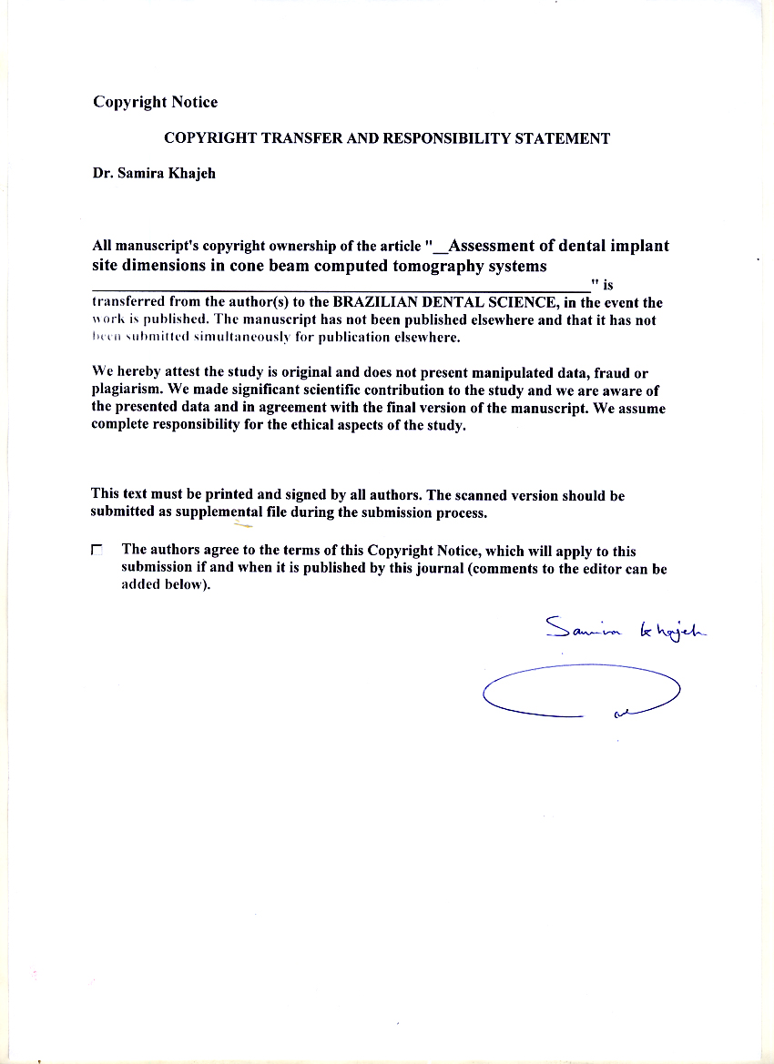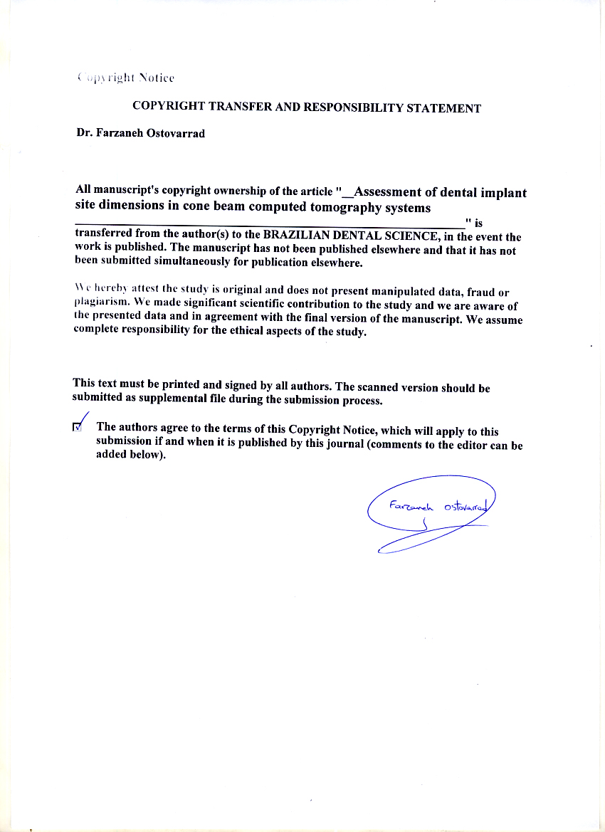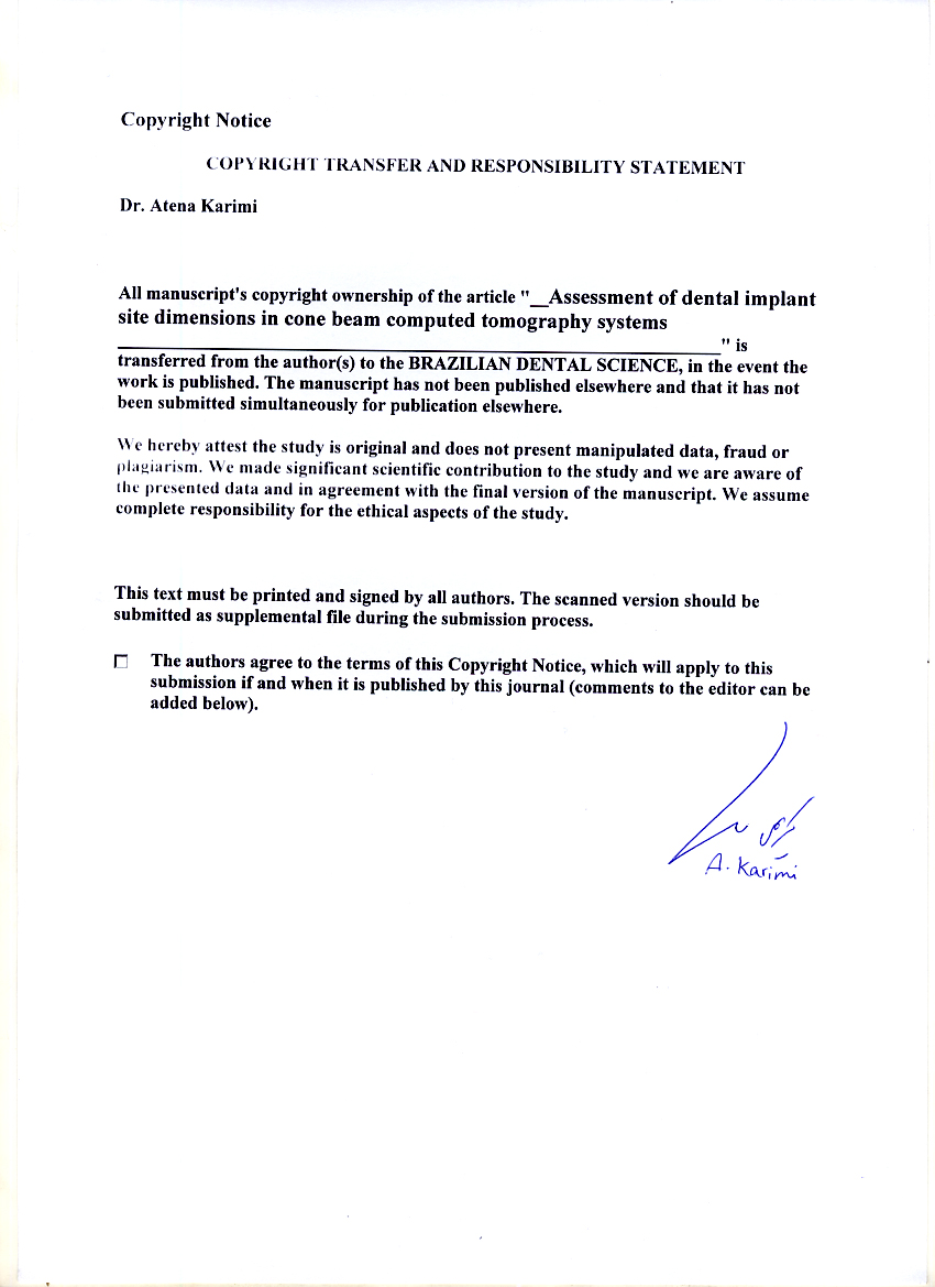 Brazilian Dental Science uses the Creative Commons (CC-BY 4.0) license, thus preserving the integrity of articles in an open access environment. The journal allows the author to retain publishing rights without restrictions.